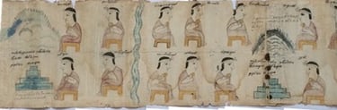 Fragmento del códice Tlaquimpa en que pueden observarse in atl in tepetl, el cerro y agua, con la pirámide y los principales.