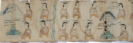 Se trata de una tira de 150 por 30 centímetros, de papel europeo reutilizado sobre el que pueden observarse imágenes representando, cerros, un río, pirámide y una serie de personas siguiendo el mismo patrón sedente sobre un banco, con una especie abanico redondo, en la mano, cubiertos por tilma y coronados por una banda atada a la frente. Sobre cada uno de ellos consta lo que parece ser su nombre, con caligrafía europea pero en lengua mexicana. Cerca de los cerros y pirámides hay también leyendas en lengua mexicana.