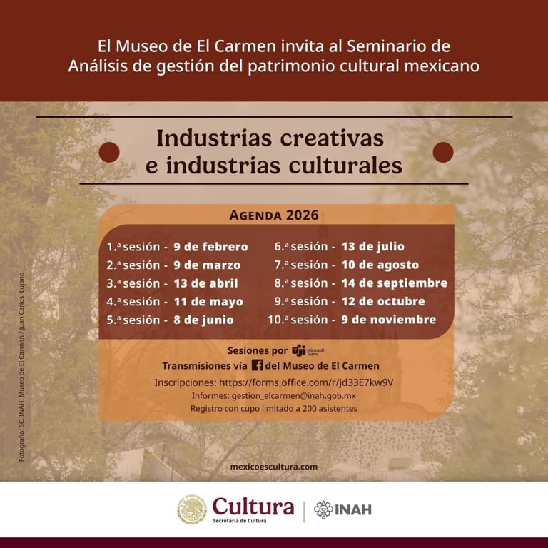 Informes: gestión_elcarmen@inah.gob.mx